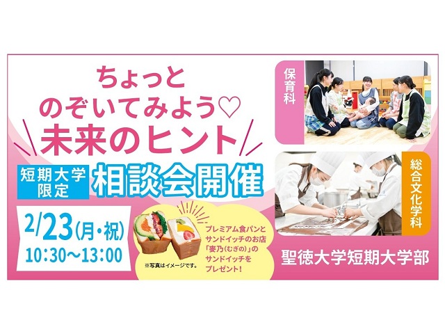 【対象】短期大学 保育科/総合文化学科【プログラム】・学科・コース説明・教員との個別相談・学科の学びを体験できるスペシャルプログラムも開催予定!個別にじっくり相談が出来る、短期大学限定相談会を開催します。進路を迷っている方も、ちょっとだけ興味のある方も大歓迎です。お気軽にお越しください。